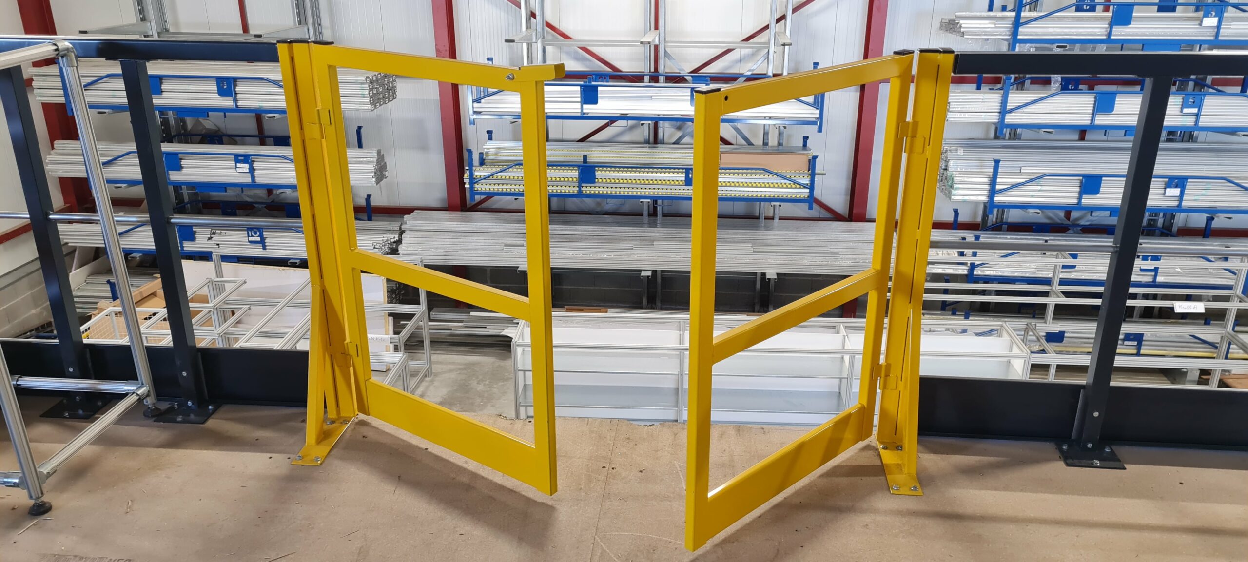 Les barrières de sécurité pour environnements industriels incluent les modèles basculants, pliants, coulissants ou à ouverture battante. La barrière écluse de sécurité basculante, conçue pour les plateformes et mezzanines, se distingue par son mécanisme intuitif et sa conformité aux normes NF EN ISO 14122-3. D’autres solutions comme les portillons automatiques ou les garde-corps fixes complètent l’offre, adaptés aux configurations spécifiques et aux flux logistiques variés.